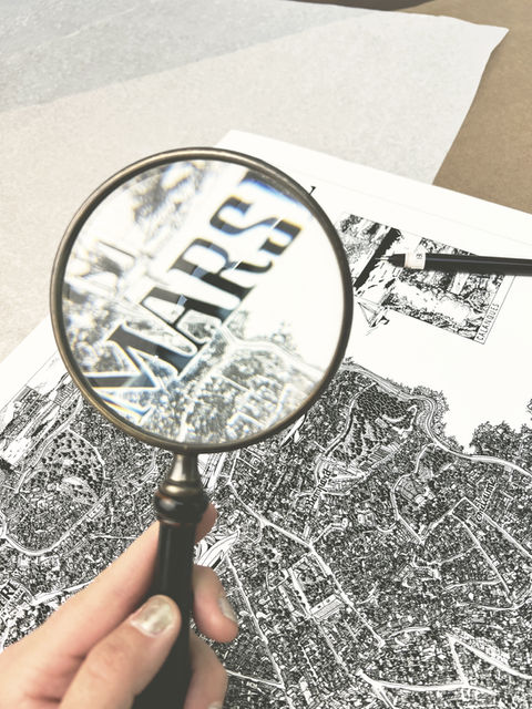 Architecte de formation, mon travail s'articule autour de deux pratiques: le dessin de cartes extrêmement détaillées à l'encre de Chine sur papier et la linogravure, technique d'impression artisanale. Influencée sans doute par mes études, mes illustrations sont teintées d'architecture, de ville et de paysage.